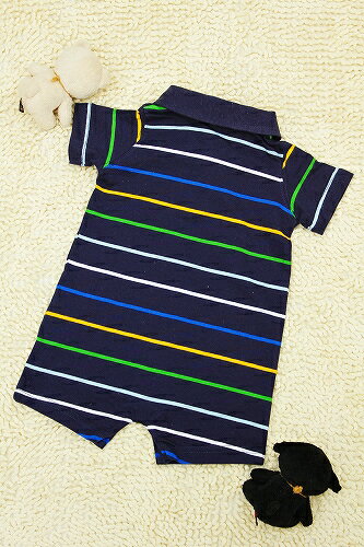予めご了承下さいロンパース ネイビー襟付きボーダー 夏に大人気の男の子用ロンパースです。